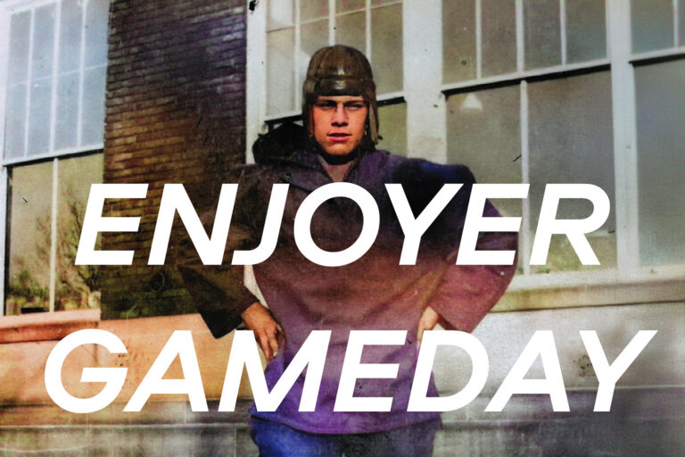 Defenders stand in the rain during Rivalry Week to protect their school symbols from spray paint